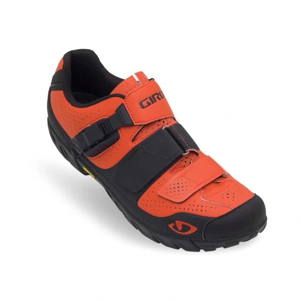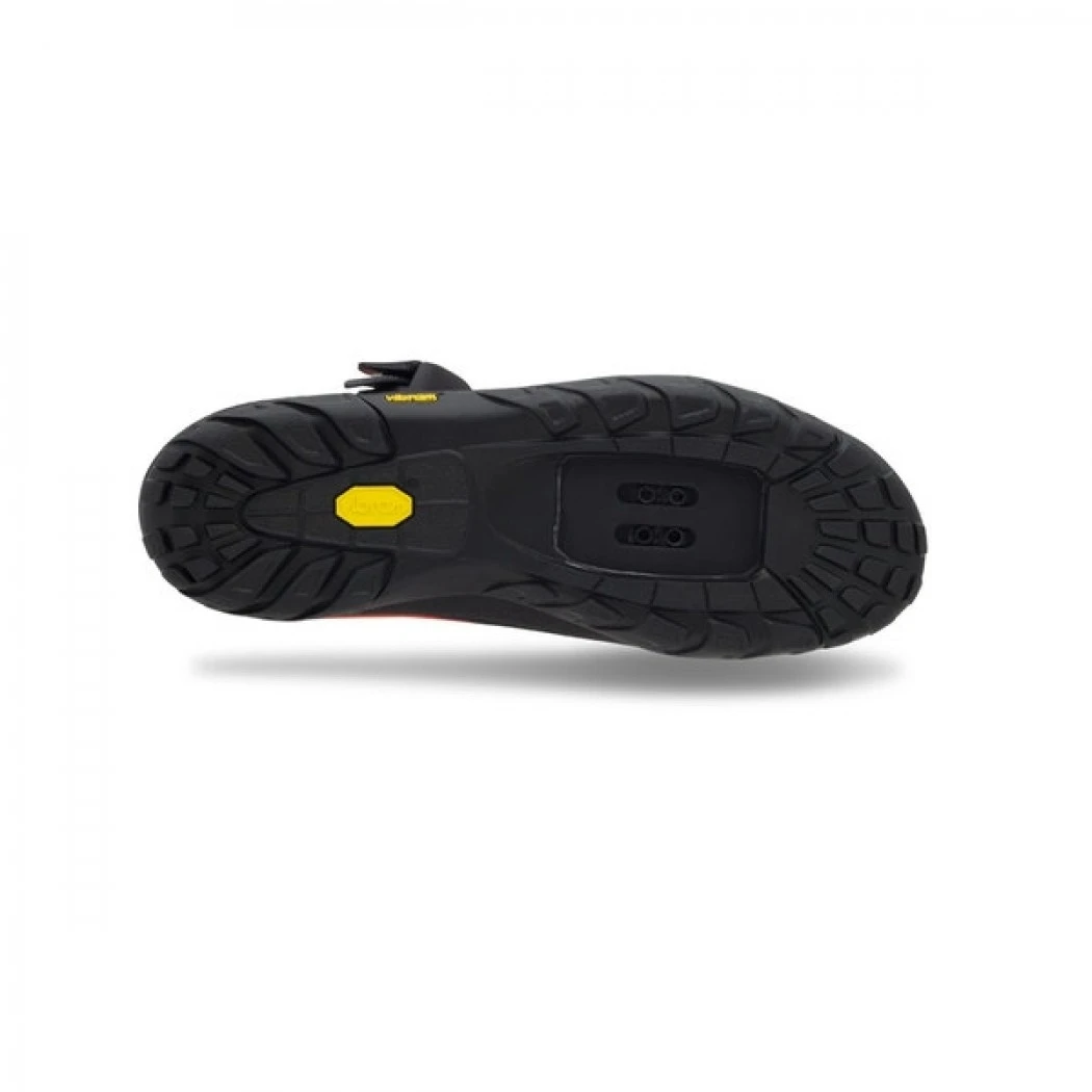 Während die meisten Trail-Schuhe immer noch auf XC-Rennen ausgerichtet sind, wurde der neue Giro Terraduro 2015 Schuh von Anfang an designed, um den Anforderungen des modernen All Mountain Fahrers zu entsprechen. Das Ergebnis, ein Schuh mit super Performance beim Biken, aber auch sehr funktionell, wenn man mal schieben muss. Der robuste Giro Terraduro Bikeshoe fährt sich wie ein Profi XC Schuh und bietet Dank seiner sehr griffigen Vibram® Sohle einen super Halt, wenn mal über Felsen oder Baumstämme geklettern werden muss. Die Passform verleiht ein sicheres Gefühl und lässt sich dank der feinjustierbaren Schnalle und der zwei Klettverschlüsse sehr gut variieren.